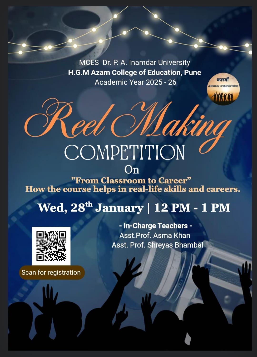 H.G.M. Azam College of Education established in the year 1993 offers UG, PG and Ph.D. programmes in Teacher Education to produce teachers of high capacities and excellence which will further lead the classrooms of 21st century and prove to be a global citizen contributing in various ways and means in nation development. The college aims to nurture academic, social, economic and professional development of student teachers by providing Cosmopolitan and Inclusive environment. The content, pedagogy and the learning experiences are provided in the college with an anticipation of preparing compassionate, committed, competent, conscientious and creative teachers for the society. The college is committed to inculcate desirable social and human values and moral principles that would make the student-teachers self-disciplined, value-oriented and responsible teachers. It also provides a wide range of opportunities and experiences for student-teachers to discover their potentials and cultivate their artistic and aesthetic sense through cultural extravaganza and nurture their social responsibility through community exposure activities.