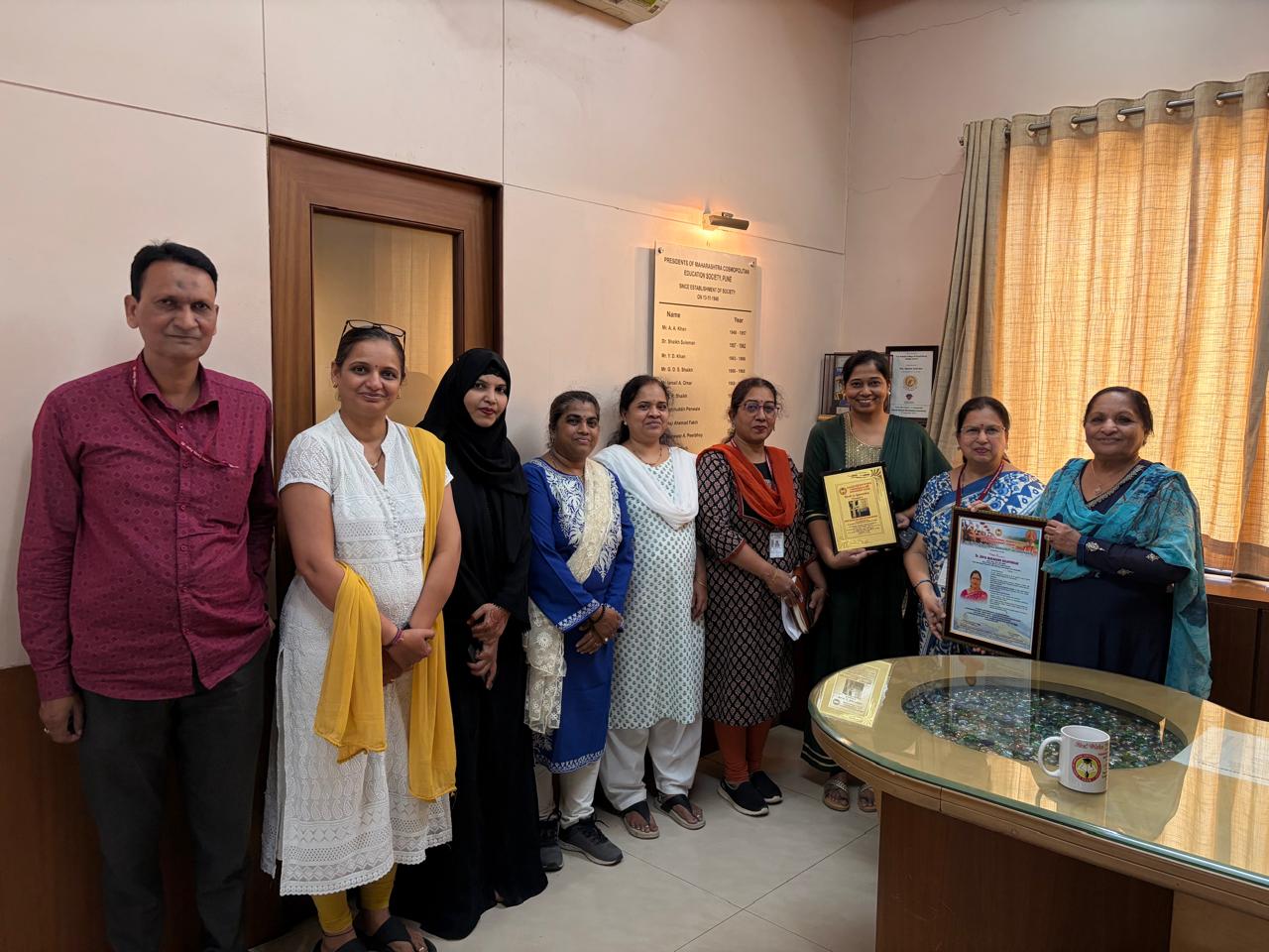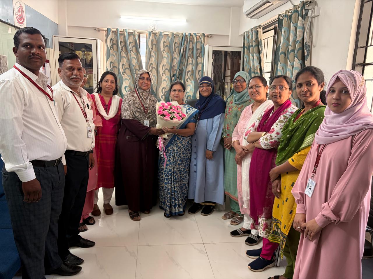 Felicitation of guest Lightening of Lamp by Dignitieries for teachers’ day programme Mrs. Abeda Inamdar Madam giving Presidental address choir by students Felicitation of Retire teacher Felicitation of teacher Vote of thanks Group Photo Mrs. Abeda Inamdar Madam Felicitating Dr. Baban Jogdand, Cheif Guest Dr. Anita Belapurkar felicitation Mrs. Abeda Inamdar Madam